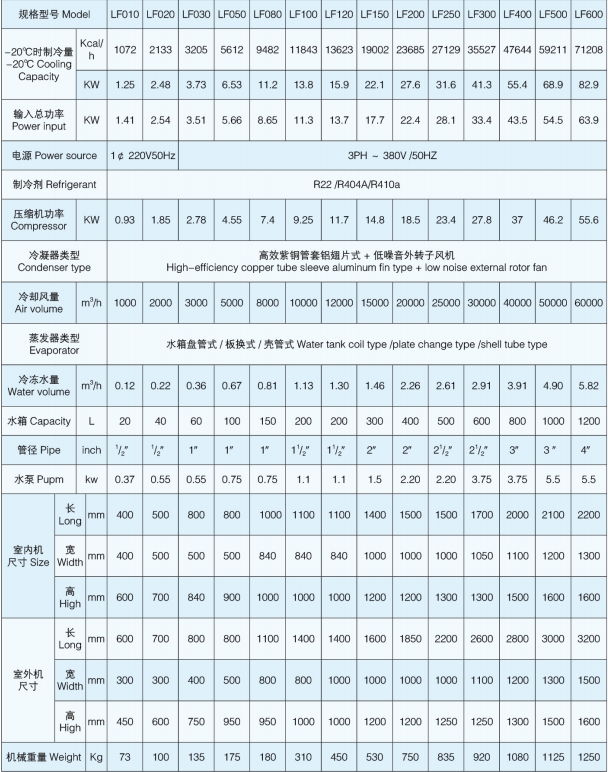 LF 系列低溫分體式冷凍機(jī)最低溫度可降至-35℃~-40℃,能滿足絕大部分低溫儀器的需求。壓縮機(jī)、水泵、溫控表、壓力控制等關(guān)鍵部件優(yōu)先使用進(jìn)口品牌產(chǎn)品,運(yùn)行穩(wěn)定,性能良好,因壓縮機(jī),散熱風(fēng)扇都安裝在室外,所以,室內(nèi)基乎無(wú)噪音。蒸發(fā)器采用不銹鋼盤管或不銹鋼板換制成,耐腐蝕、抗凍,溫度設(shè)置可在 -35℃~+35℃之間任意調(diào)節(jié)。是醫(yī)療,化工,實(shí)驗(yàn)室等領(lǐng)域低溫儀器制冷降溫的主要力量!