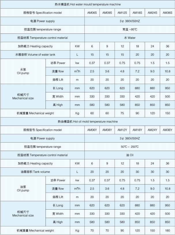 AM系列模溫機(jī)是專業(yè)針對(duì)熱壓、壓延、硫化成型等生產(chǎn)線設(shè)計(jì)制造的溫度控制設(shè)備。在汽車輪胎、擠出成型、熱壓成型等行業(yè)得到廣泛使用,性能穩(wěn)定,防炭黑設(shè)計(jì),是同類型產(chǎn)品的理想選擇。